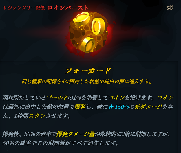 ちなみに同じ冷気記憶が雪山ボスまでに出た場合はそれを抱えクリアまでに4つ集めることで上の「フォーカード」の達成も狙えます、出来たら狙ってみましょう。