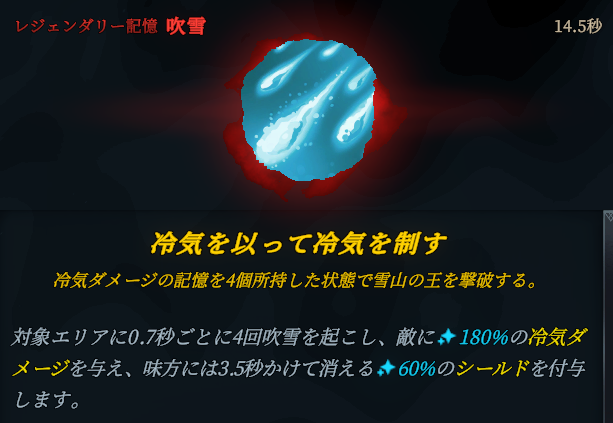 冷気ダメージの記憶を4個所持した状態で雪山の王を撃破する。