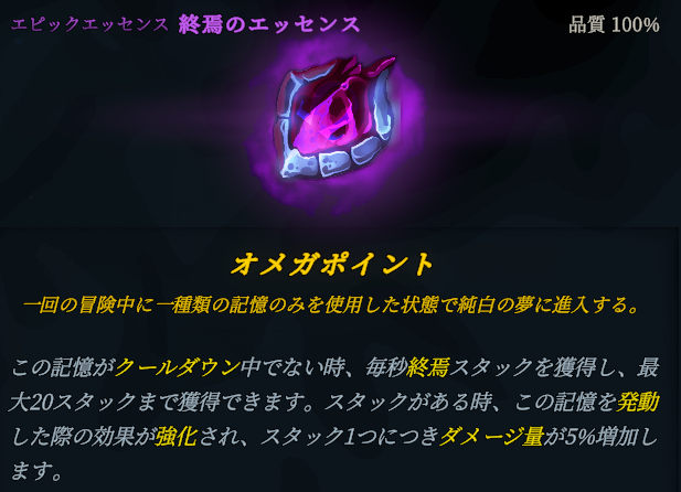 CD+20秒待つことでダメージ量を上げるエッセンスです。